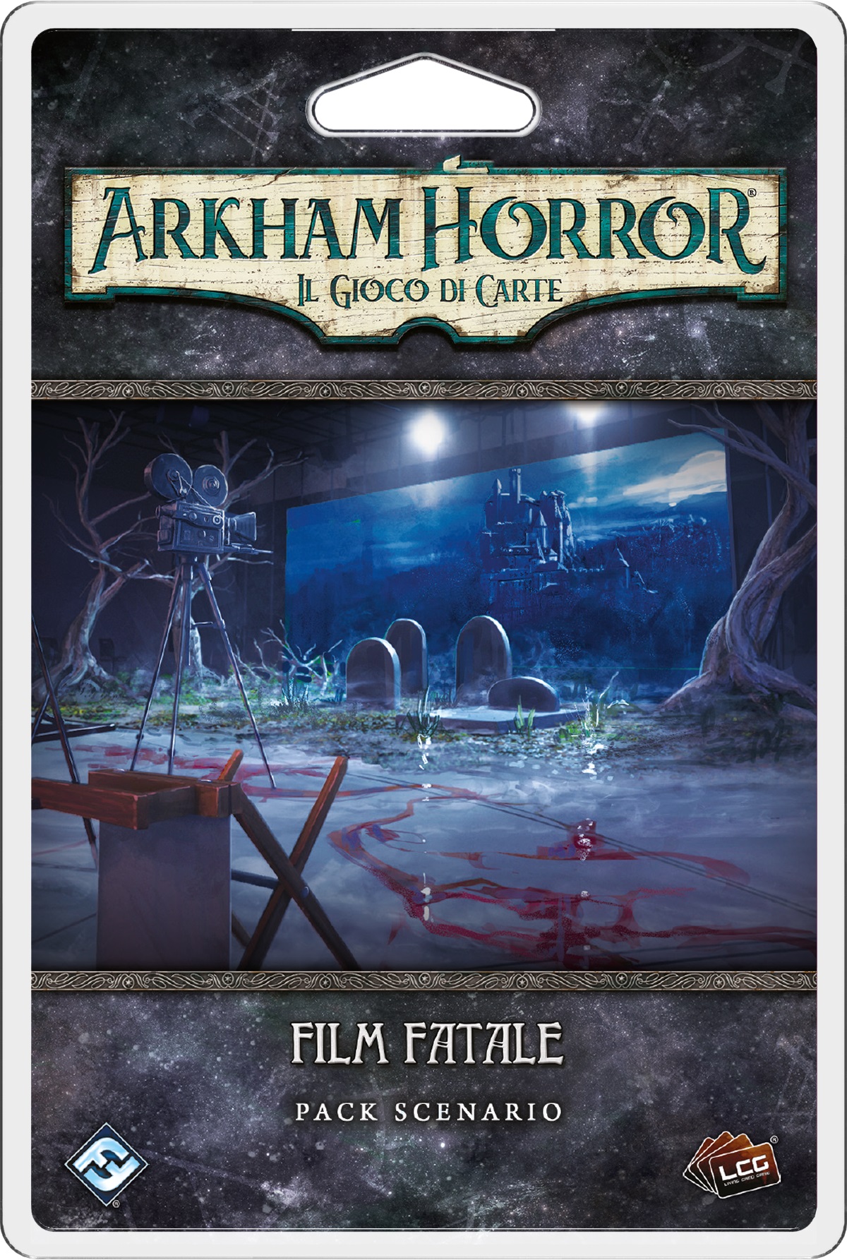 Luci, Motore, Azione! È l’età d’oro del cinema muto, un’epoca che ha sfornato una lunga serie di classici per il grande schermo. Ma quando un’ambiziosa produttrice alle prime armi scatena una serie di orrori maledetti su tre set cinematografici, stara ai giocatori porvi rimedio prima che i titoli di coda colpiscano l’intera produzione! In Film Fatale, uno scenario inedito per Arkham Horror LCG, da 1 a 4 investigatori si recheranno sui tormentati set hollywoodiani dello Studio C per svelare il mistero del caos che si è abbattuto su tre diversi generi di film. Questo scenario può essere giocato come scenario singolo o come storia secondaria da integrare in una qualsiasi campagna.
