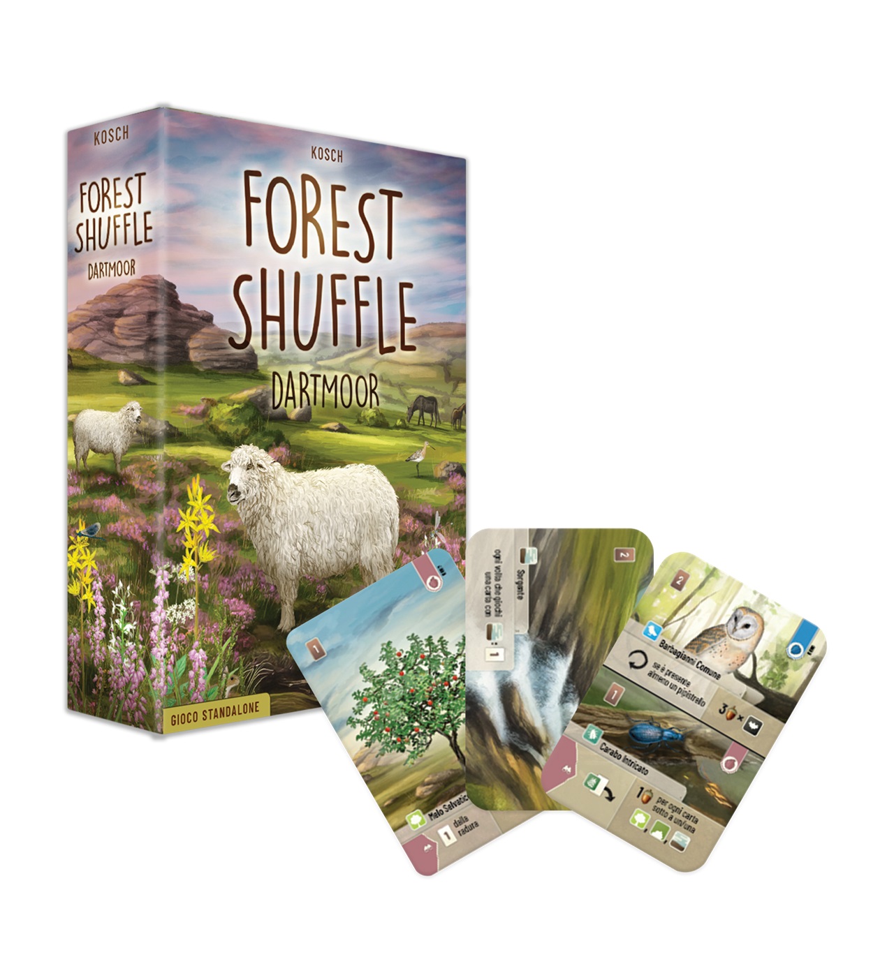 Un gioco standalone della linea Forest Shuffle! Questo gioco non può essere combinato con Forest Shuffle e le sue espansioni. Le meccaniche di gioco di base sono le stesse di Forest Shuffle, ma con qualche variazione. L’elemento novità più impattante sono le carte TERRENO, che permettono di posizionare carte al di sopra o al di sotto di esse, nonché qualche effettino nuovo nelle carte. Dartmoor rappresenta una variante per gli amanti di Forest Shuffle che hanno ormai consumato la loro scatola o che preferiscono la brughiera alla foresta!
