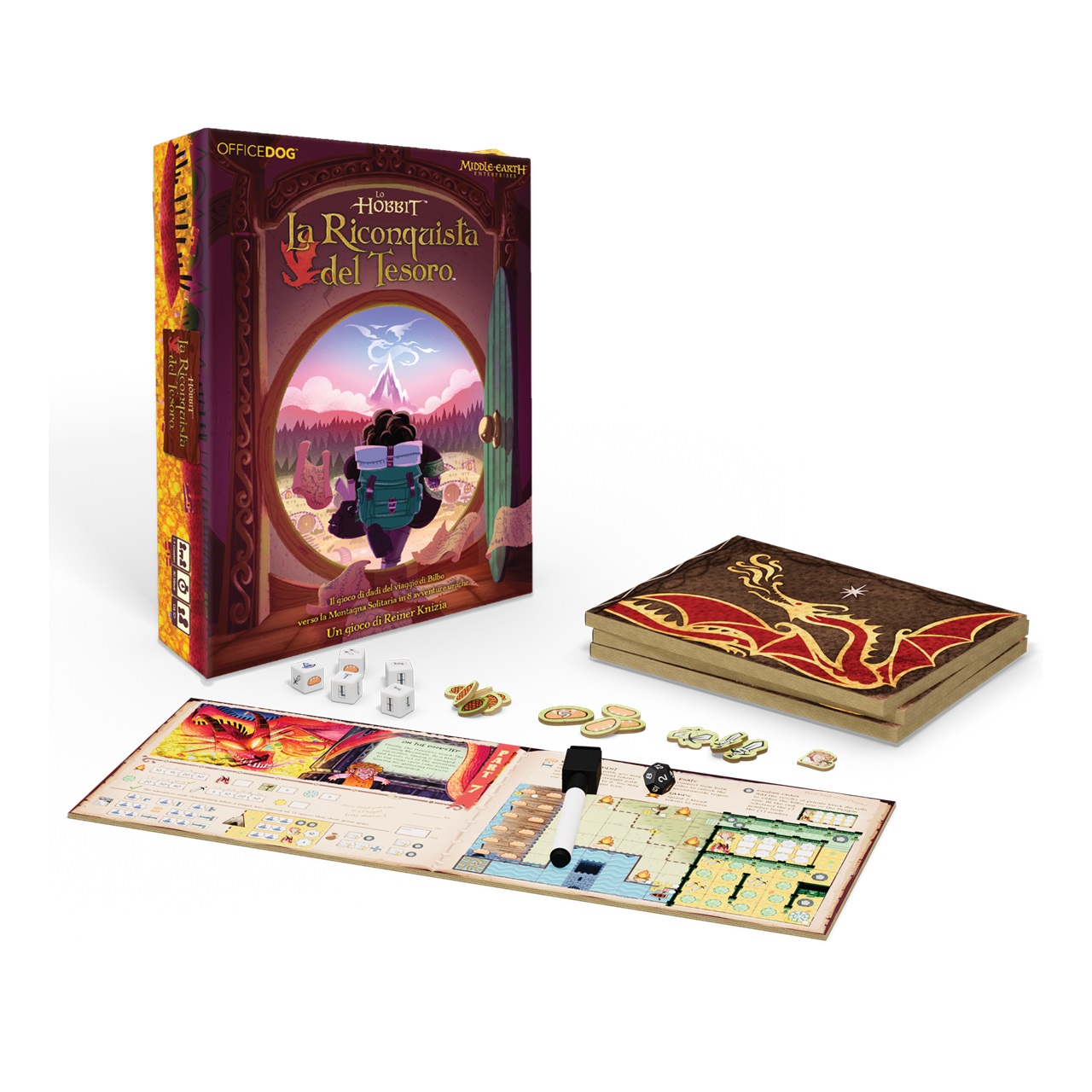 Un gioco Roll&Write di avventure ideato da Reiner Knizia per 1- 4 giocatori da 30 minuti per parte. A ogni turno vengono tirati 5 dadi e, in ordine di turno, ogni giocatore prenderà un dado per applicarne l’effetto sul proprio libro dell’avventura.