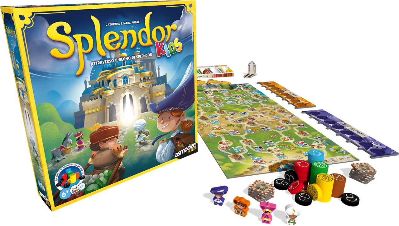 Il famoso gioco di strategia Splendor adattato per i bambini. I giocatori prenderanno le risorse dalla riserva e le spenderanno per avanzare sul tabellone attraversando citta e villaggi, fino a raggiungere il Palazzo! Ogni citta o villaggio richiede una combo di gettoni cibo (paragonabile al costo delle carte del classico Splendor). Ogni Viaggiatore che arriva al Palazzo di Splendor prima che i cancelli si chiudano (quindi entro la fine del round) vincerà la partita!