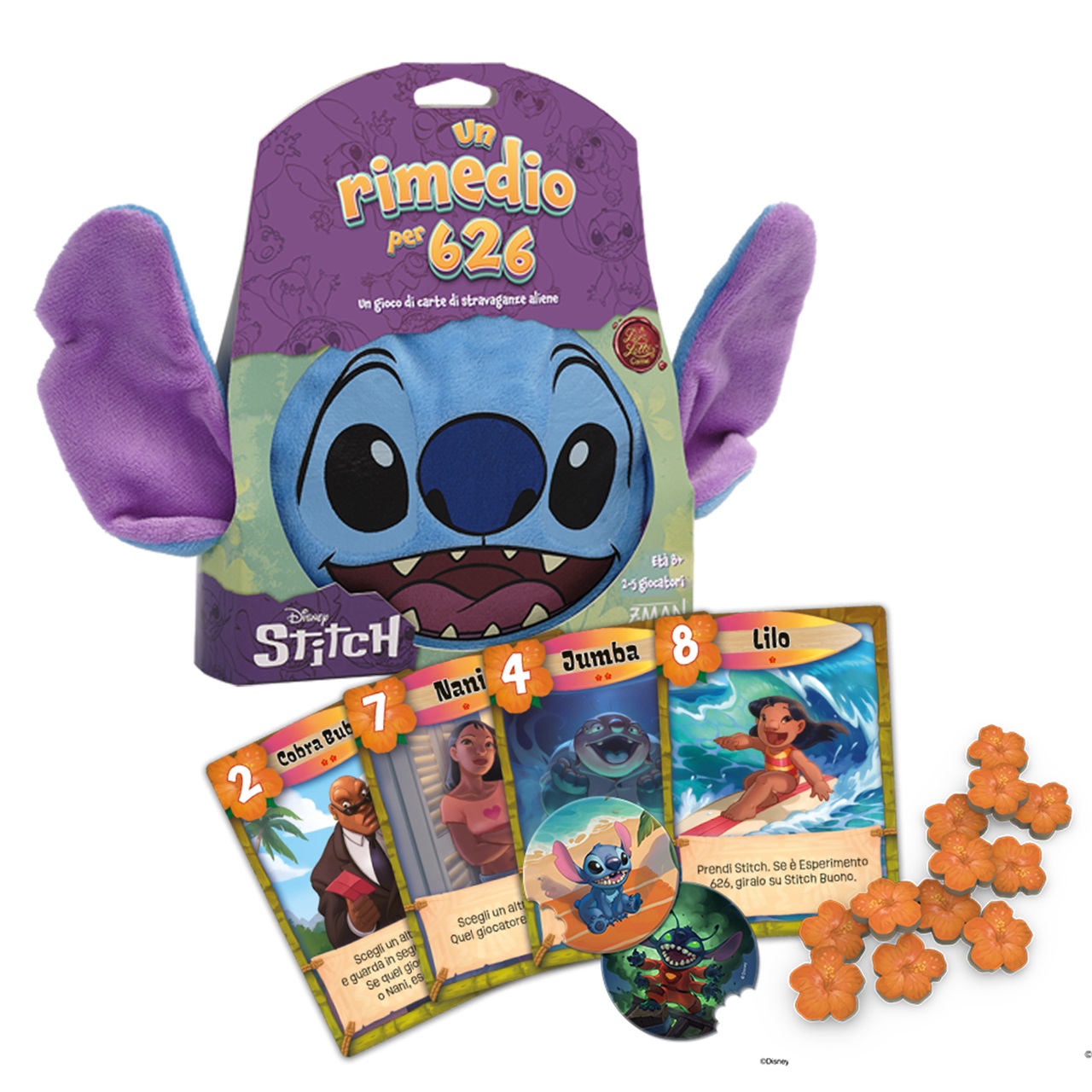 Una nuova versione di Love Letter… a tema Stitch! Jumba è di nuovo alle prese con i suoi trucchetti da scienziato pazzo. Stitch è tornato a essere distruttivo, e spetta ai giocatori aiutarlo a rimettersi sulla buona strada. In questo rapido gioco di deduzione, i giocatori si sfidano per catturare Stitch e assicurarsi l’aiuto dei suoi più cari amici, ma attenzione: alcuni esperimenti potrebbero portare il caos! Riusciranno a trovare un rimedio per626?