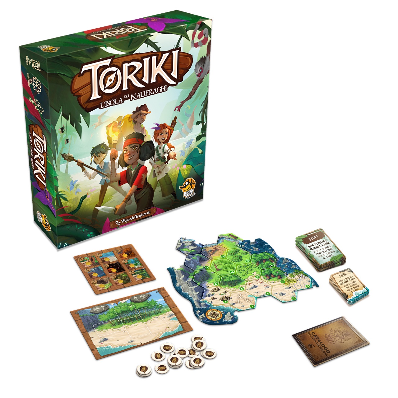 Toriki: L’Isola Dei Naufraghi è un gioco collaborativo per famiglie di avventura, esplorazione e sopravvivenza.
