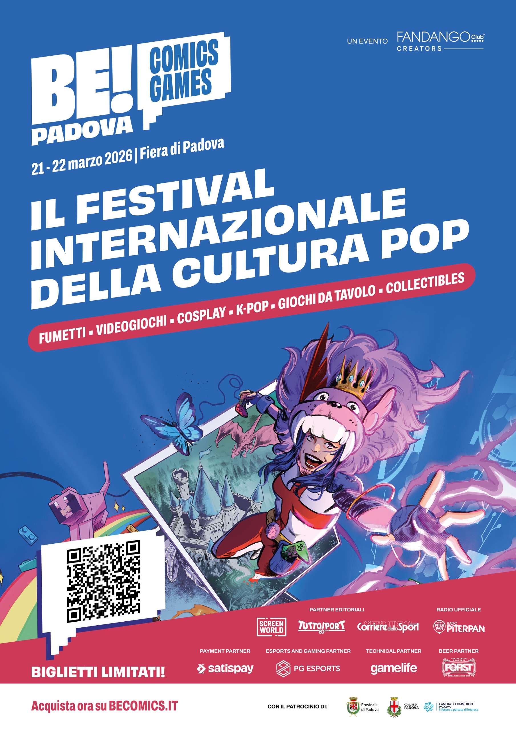 Milano, 27 febbraio 2026 – Manca meno di un mese a Be Comics! Be Games! Padova, l’evento pop organizzato da Fandango Club Creators per gli appassionati di fumetti, videogame, esport, giochi da tavolo e cosplay. Il 21 e 22 marzo, Padova Hall ospiterà la line-up di autori e artisti più ricca nella storia della manifestazione.