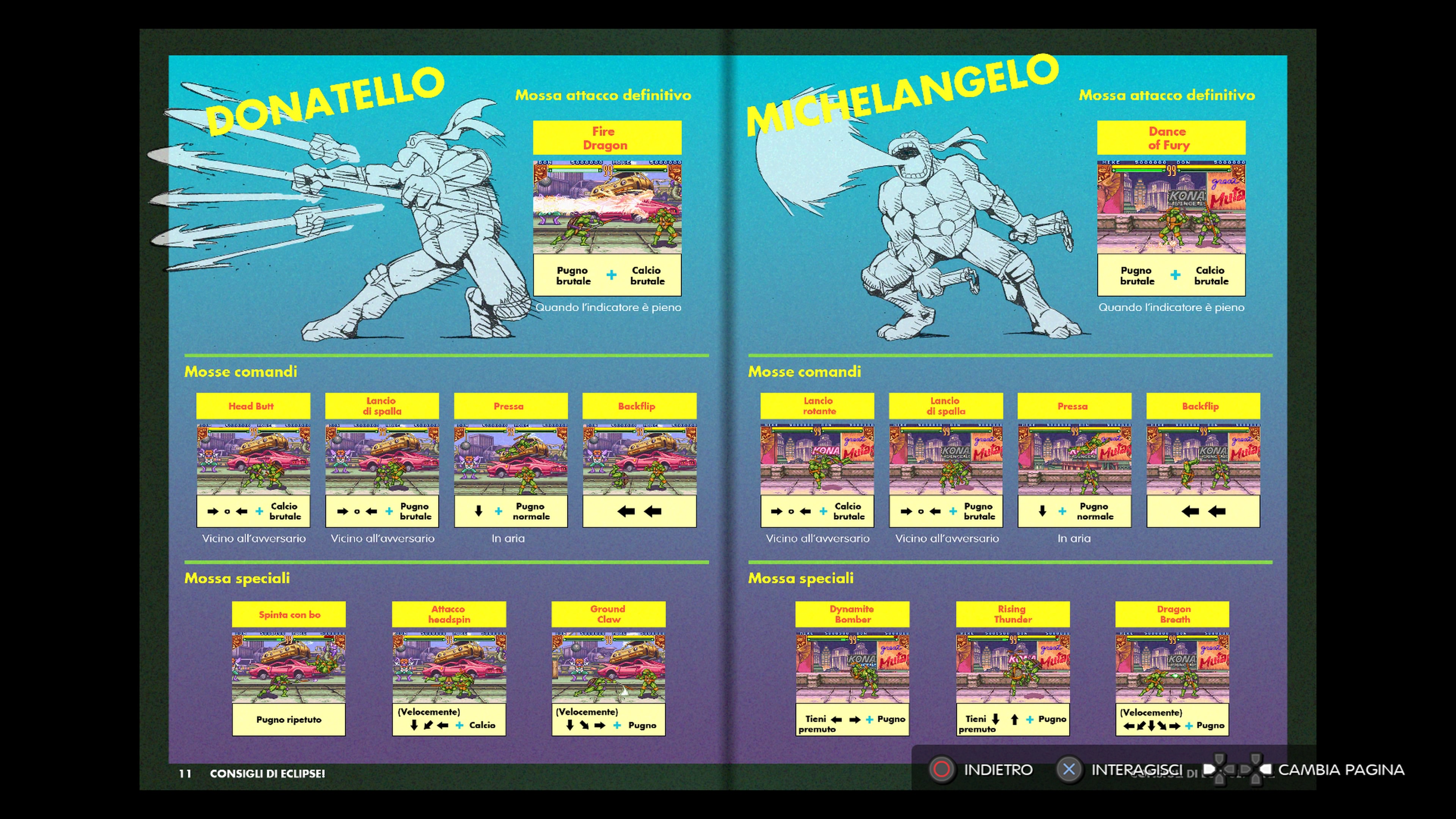 A conti fatti, il prodotto confezionato da Konami e Digital Eclipse, offre un titolo dall’emulazione prettamente identica alle loro versioni originali e che si rivolge principalmente ai fan di vecchia data e ai giocatori incalliti di retro-gaming. Se fate parte di questa fetta di giocatori, il mio consiglio è di non pensarci due volte e di buttarvi subito a capofitto su questa compilation, soprattutto se avete amici che amano le Tartarughe Ninja come voi e con cui condividere in co-op le vostre scorribande in una New York piena zeppa di soldati del Clan del Piene da prendere a calci.