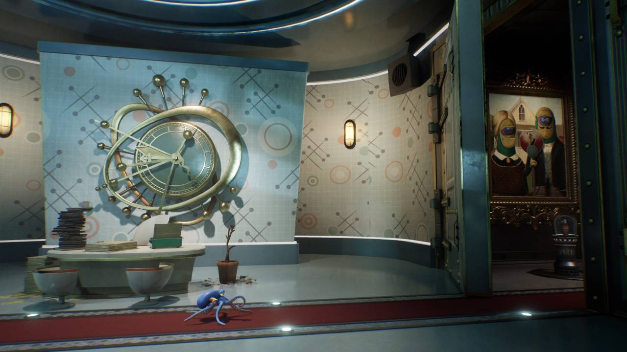 Il punto di forza di Darwin’s Paradox sono sicuramente le animazioni, e non parlo solo di quelle del polpo ma anche di quello di tutti gli altri personaggi che affollano lo schermo, dal singolo topo al finto umano che barcolla levandosì la testa per inserirci una lettera. Si nota evidentemente il passato come studio d’animazione di ZTD Studio, anche dalla regia e dall’intera atmosfera da film dei Looney Tunes che pervade tutta l’avventura. Il titolo è tradotto ed adattato in un ottimo italiano, e i documenti nascosti negli stage aiutano ad espandere il world building cinico comico della pazza invasione aliena. Segnalo che, nella versione Xbox Series X, il titolo ha problemi di luminosità, che rendono alcune sezioni subacquee veramente ostiche e ancora più snervanti di quanto dovrebbero essere di base.