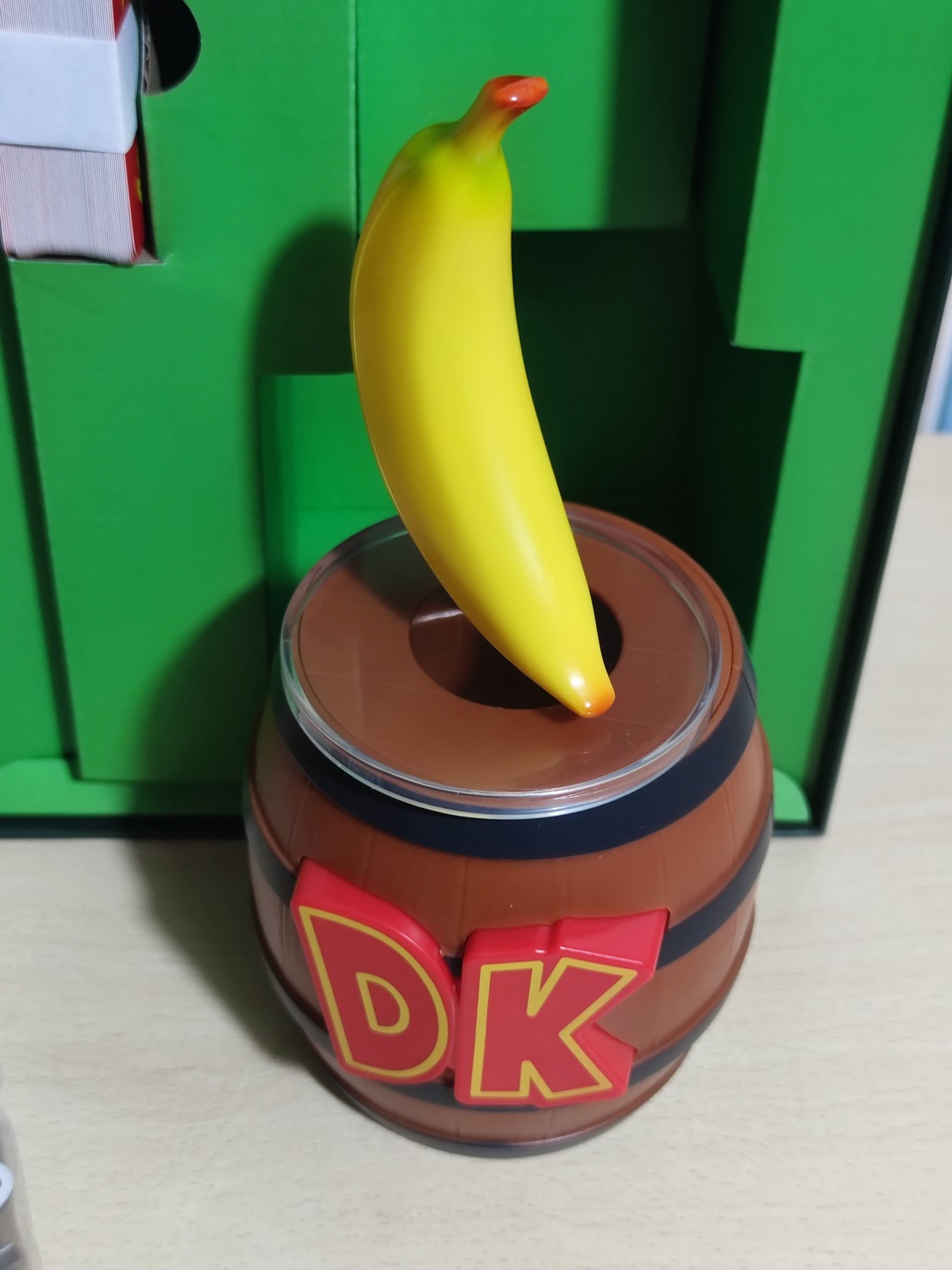 - Banana appoggiata sul tavolo accanto al Barile DK: quando il Totem Banana non è più sul Barile, il duello cambia completamente ritmo. I contendenti devono abbandonare il riflesso classico e puntare ai segnalini banana in cartone sparse sul tavolo. Il primo che ne afferra una e riesce a infilarla nella fessura del Barile è il vincitore del duello. I risultati inerenti al vincitore e al perdente sono i medesimi.