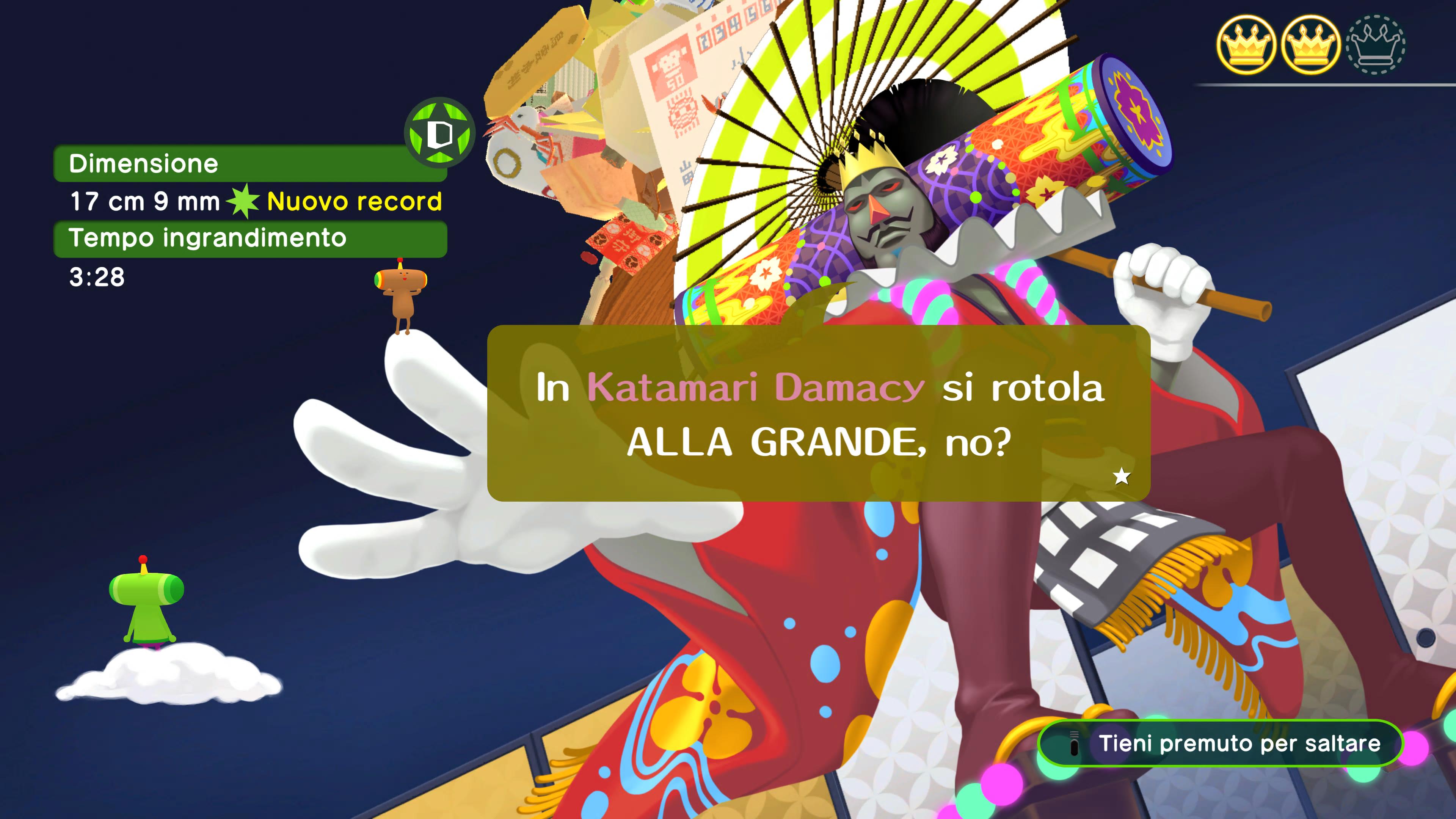 Volete collezionare ogni corona disponibile e sbloccare l’antica e preziosa pergamena del Re? È un ulteriore livello di collezionismo possibile in questo capitolo. Volete ottenere “S” in ogni livello e dimostrare di essere il miglior rotolatore di KATAMARI dell’intero cosmo? Nessuno ve lo impedirà.