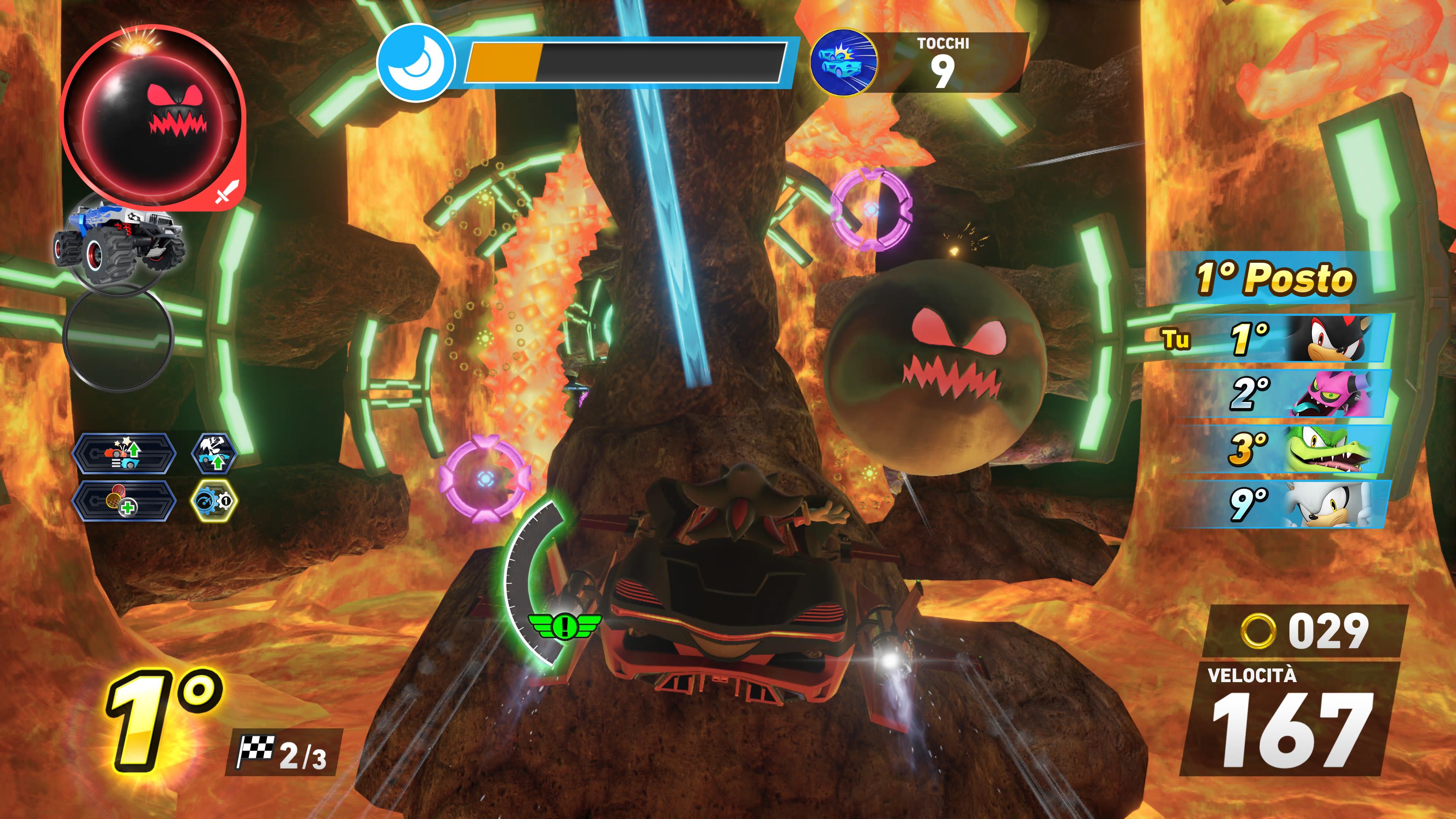 È qualcosa a cui si fal’abitudine, soprattutto s edoveste tuffarvi nell’online prima che nella modalità single player, facendovi le ossa sbattendo molteplici volte contro i muri. Sonic Racing: CrossWorlds premia le collisioni tra piloti, ma penalizza (forse troppo) quelle con l’ambiente circostante. Poi, sempre parlando di collisioni, il lavoro fatto dal team non è minuzioso, e spesso capita di non percepire quasi per nulla l’impatto, se non per un calo drastico della velocità di corsa.