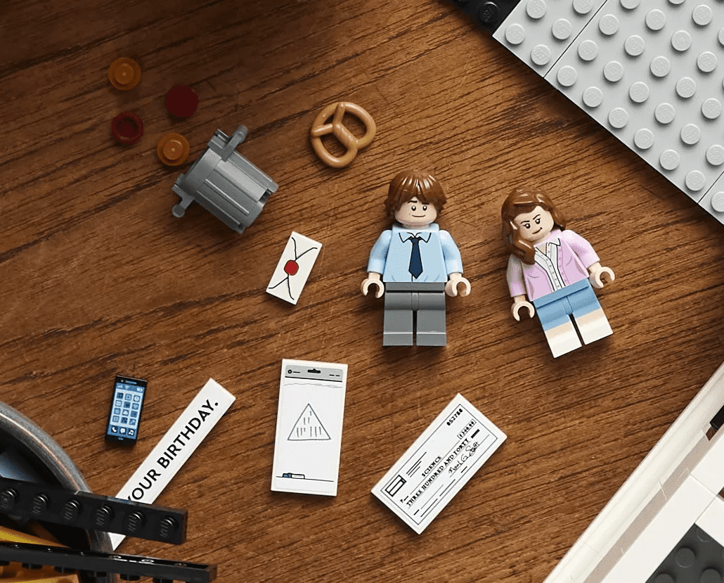 Il set include 15 minifigure LEGO: Michael Scott, Dwight Schrute, Jim Halpert, Pam Beesly, Ryan Howard, Angela Martin, Oscar Martinez, Kevin Malone, Stanley Hudson, Kelly Kapoor, Phyllis Lapin Vance, Meredith Palmer, Creed Bratton, Toby Flenderson e Darryl Philbin, più una figure LEGO del gatto di Angela.