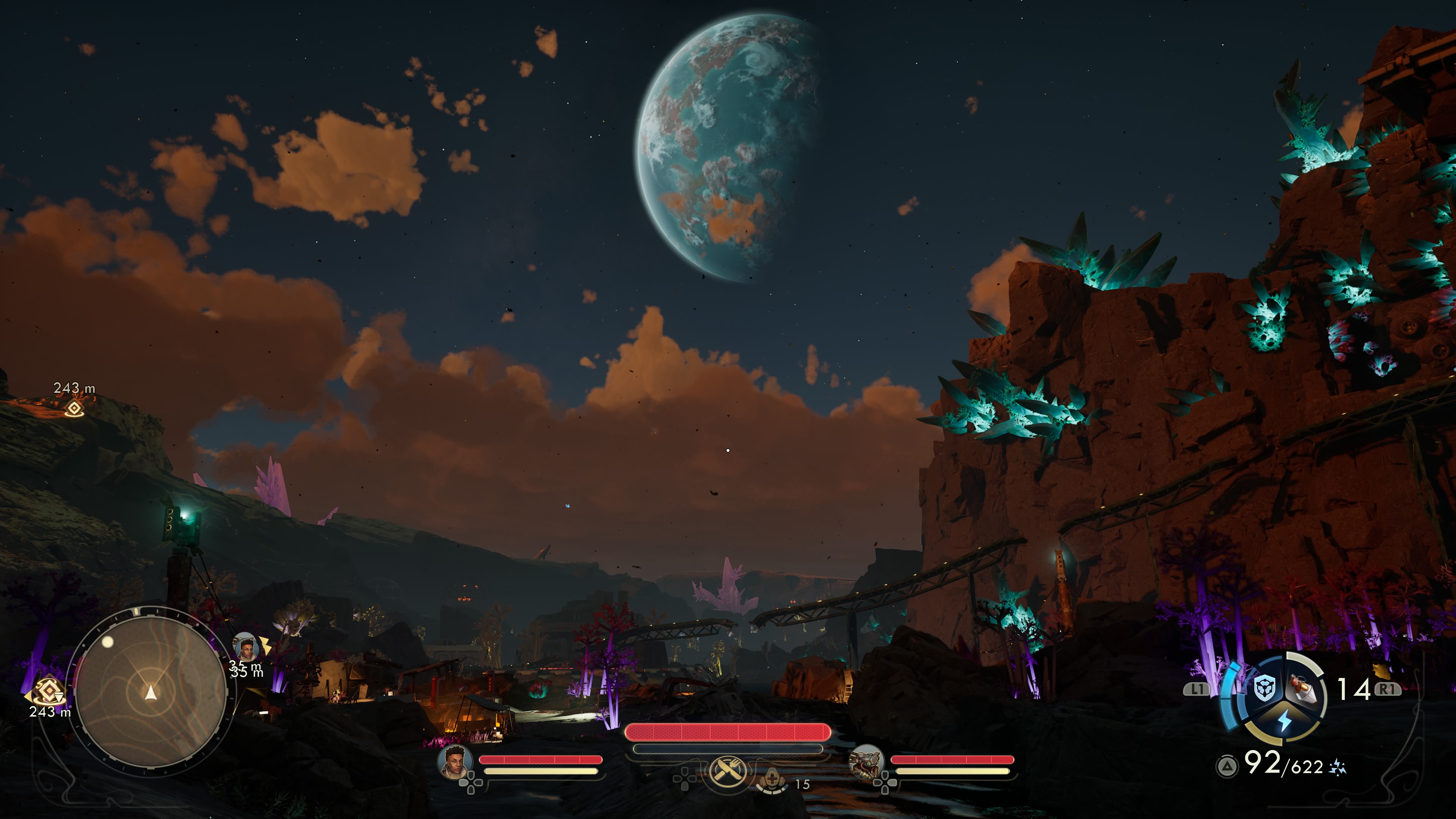 La durata di The Outer Worlds 2, solo per quanto riguarda le missioni principali, si attesta intorno alle stesse ore del suo predecessore, infatti siamo sulle 30 ore circa. Con tutte le missioni secondarie e la ricerca dei collezionabili si superano abbondantemente le 60 ore. Durante le prove effettuate su PlayStation 5 le performance si sono mantenute stabili, segno che il motore regge bene anche nelle situazioni più complesse. Non abbiamo riscontrato bug degni di nota, né bug grafici particolari. Con un gioco così vasto, però, non sono mancati qualche fastidioso glitch sonoro durante gli scontri, qualche icona di attenzione dei nemici che rimaneva anche quando questi erano stati abbattuti, ma anche qualcosa di più importante, tuttavia per fortuna sporadico, tipo trigger bloccati o salvataggi automatici capricciosi risolti con un riavvio del gioco.