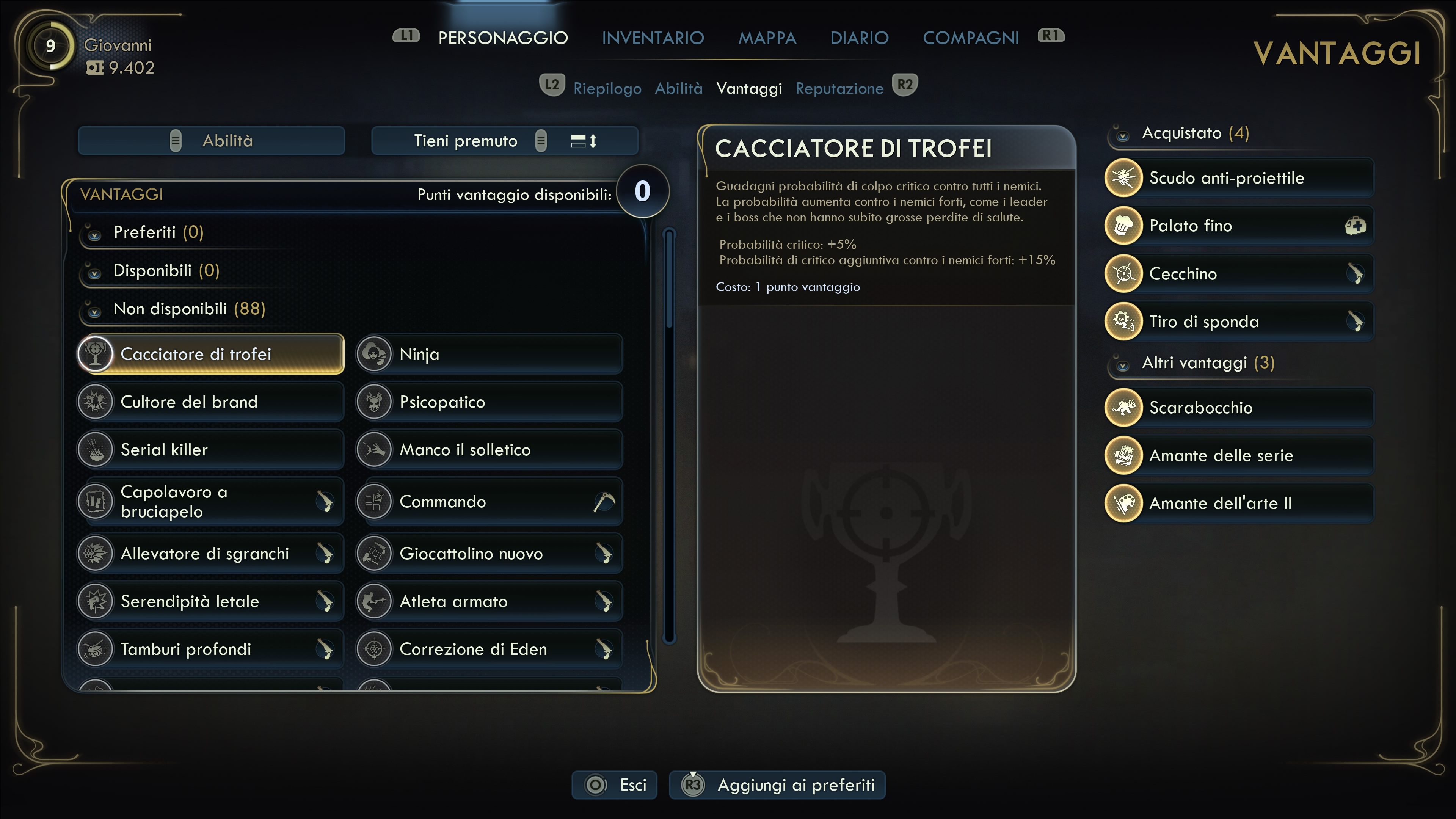 L’aspetto più importante e fondamentale per il gameplay è il passaggio dagli attributi, che erano statistiche su cui si investiva quando si saliva di livello, a vere e proprie peculiarità che dettano il funzionamento del personaggio e che prendono il nome di Tratti. Sono 12, alcune delle quali fondamentali come Ingegneria, Esplosivi, Armi, Hacking e Comando, e a inizio gioco se ne possono scegliere un massimo di due, solo che in questo caso bisogna anche scegliere obbligatoriamente un difetto che bilancia importanti bonus con dei malus. Sono 3 inizialmente, più avanti vi spieghiamo un po’ meglio il sistema di difetti, ma colpiscono maggiormente Stupidità, che impedisce di mettere punti in cinque delle 12 Abilità e Malattia, che fa perdere salute e resistenza alle tossine.