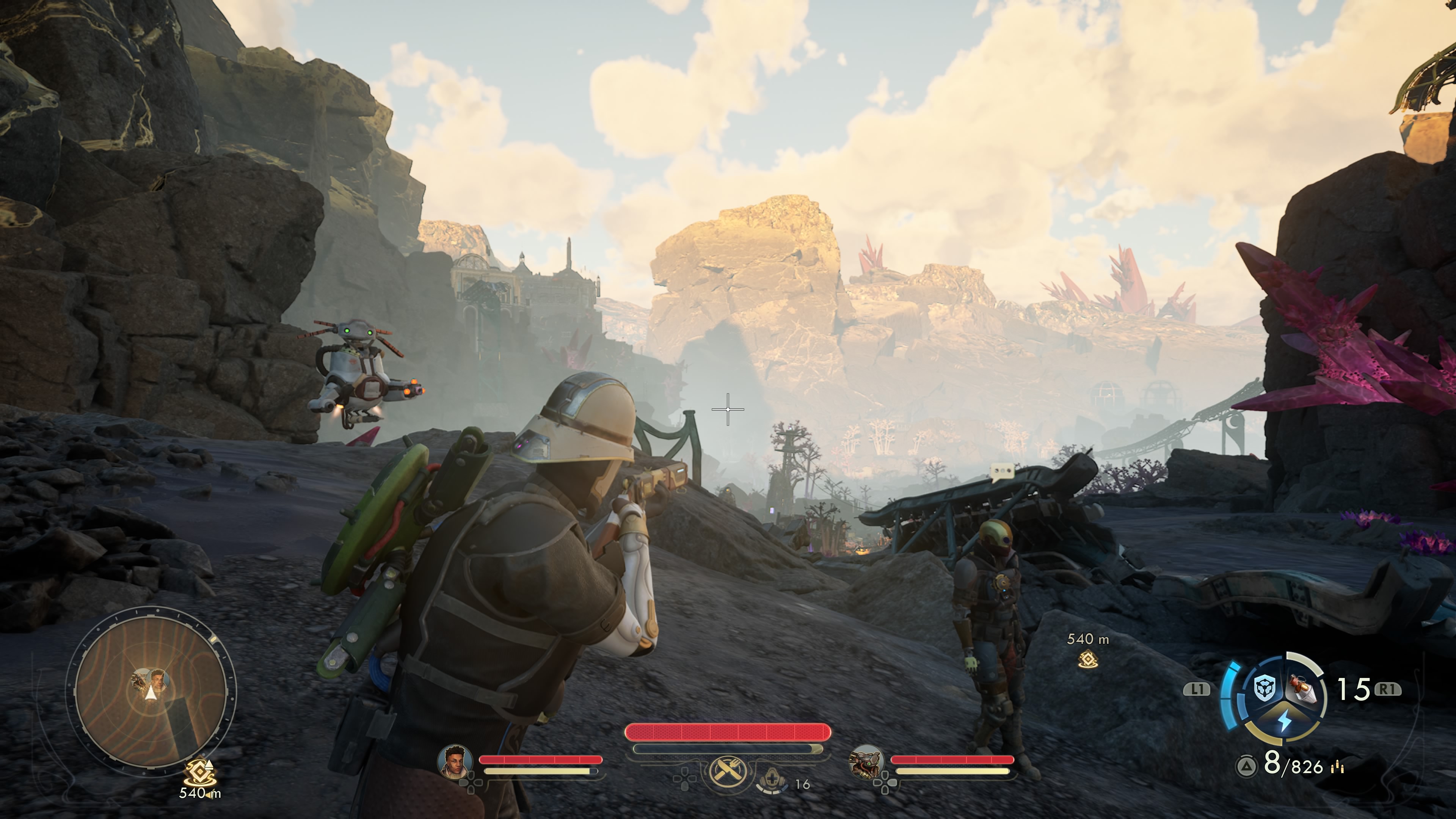 Rispetto al primo The Outer Worlds ora è stato posto l’accento anche su una migliore mobilità, su un comportamento più intelligente dei nemici e su tipi diversi degli stessi. Non c’è più la scalabilità dei livelli, di conseguenza ora si tiene conto maggiormente conto della difficoltà, consentendo al giocatore di gestire gli scontri con maggiore consapevolezza. Tuttavia l’intelligenza artificiale è ancora da migliorare. I nemici alternano momenti di aggressività credibile ad altri in cui sembrano dimenticare la presenza del giocatore. È un difetto che spezza talvolta l’immersione, ma che potrebbe essere corretto prima del lancio. Tuttavia sono molto più attenti e tattici, con momenti davvero complessi da gestire e numerose morti al conto finale.
