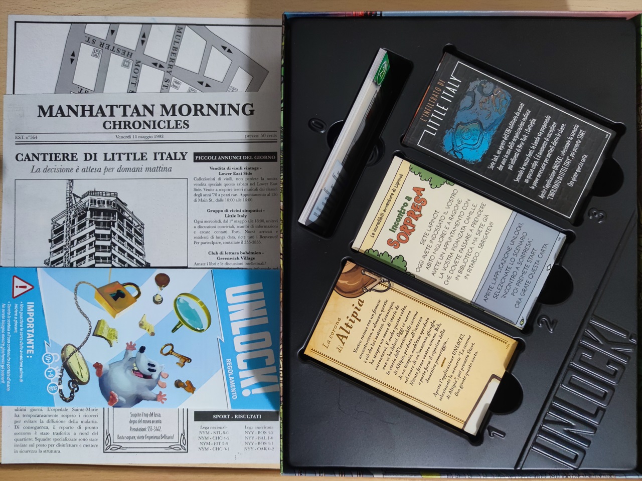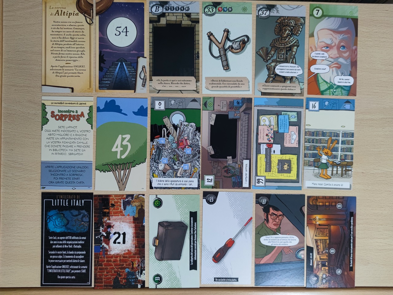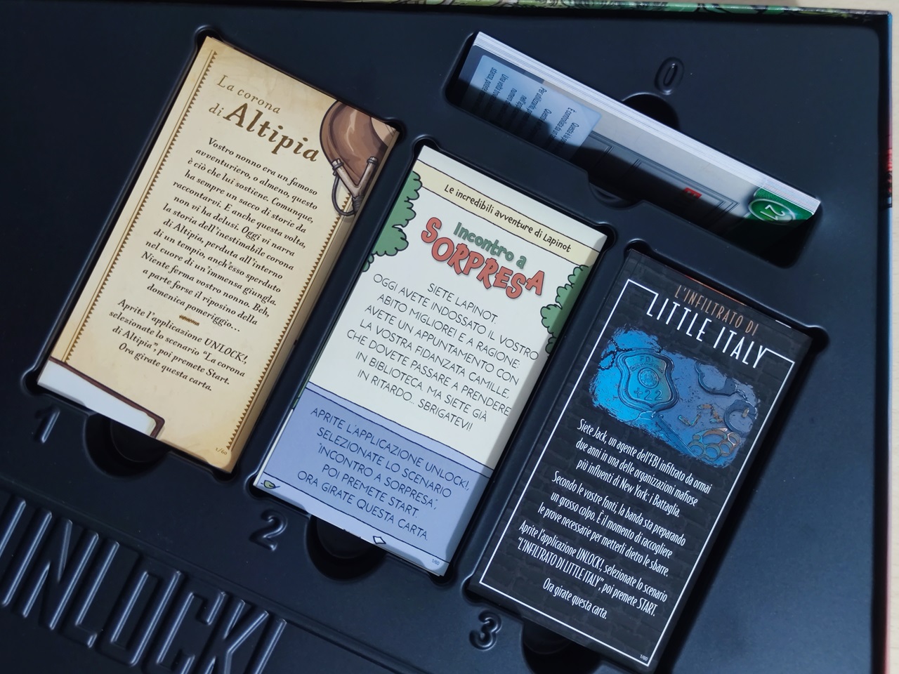 Gli enigmi presentati sono accessibili e lineari, pensati per offrire un’introduzione piacevole anche a chi affronta per la prima volta la serie Unlock!. Pur rimanendo lo scenario più tradizionale del trio, introduce una particolare modalità di gestione delle carte tramite una numerazione non convenzionale, che aggiunge un tocco fresco e divertente senza mai sfociare nello spoiler di meccaniche specifiche.